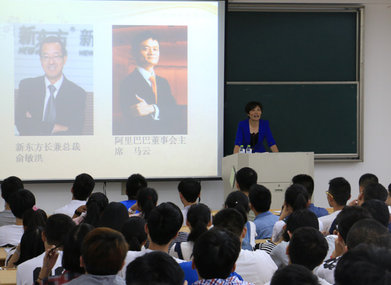 历届几名取得巨大成就的学长学姐为例,激励同学们认真学好专业课的同时,不断提升自身优秀品质,提高道德水平。她还列举了俞敏洪、马云等知名成功人士的奋斗事迹,鼓励新生在不断奋斗的同时时刻不能放松道德修养。