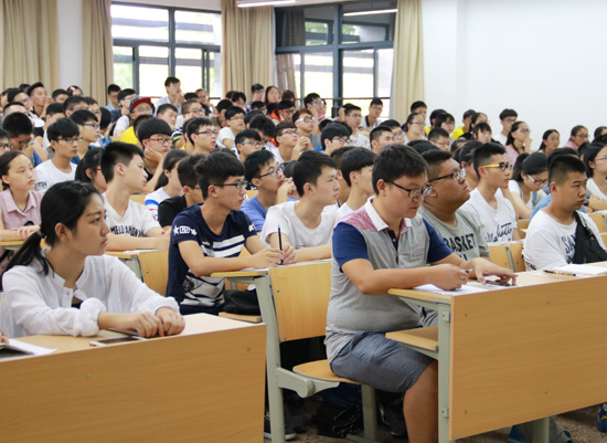 院长俞军教授主讲,全体2016级新生到场聆听。
