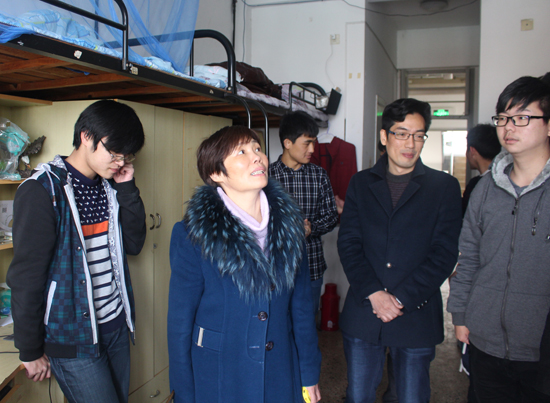 2015年12月31日中午,阳光明媚,新年的气息越来越浓厚。午饭后,院长俞军教授与院党委副书记史正东、学生科副科长邱科强以及辅导员一行走访学生寝室,关心学生期末学习生活情况,并给他们带去新年的美好祝愿。