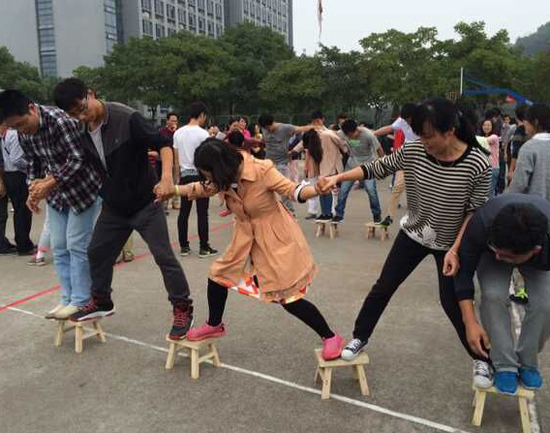 党委书记楼智美等院领导也到场加油助威。最先开始的项目为板凳接龙,银河国际