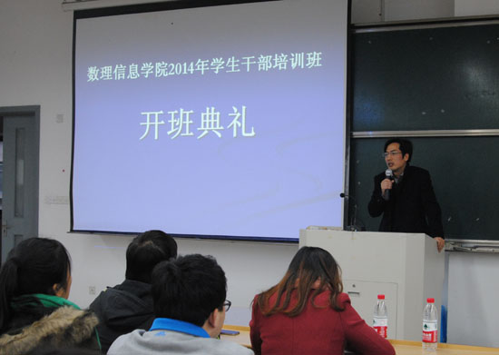 开班典礼后,校团委周旗江书记为全体学生干部做了系列培训第一讲——《做个能干的学生干部》,他以生动的例子从十个方面讲述了学生干部应该具备的素养和能力。