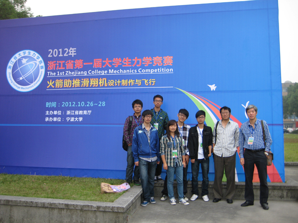 10月26-28日,浙江省首届大学生力学竞赛在宁波大学隆重举行。来自浙江大学、浙江工业大学、浙江师范大学等省内25所高校的50支代表队参加了本次竞赛。竞赛题目为“火箭助推滑翔机设计制作与飞行”,竞赛通过“理论方案设计”、“火箭助推滑翔机制作与装配”、“飞行试验”及“答辩”四个环节,将理论力学、材料力学、空气动力学等知识与航空航天紧密联系起来,充分锻炼了学生的潜力、创造力和想象力。