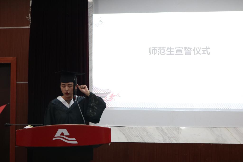高度重视师范生师德规范养成教育,使其贯穿大学四年教育的全过程。最后,她对同学们提出了期望,希望同学们在未来的岁月里秉承爱岗敬业、立德树人的宗旨,牢记母校教诲,以优异的成绩回报社会、回报母校、成就自我。