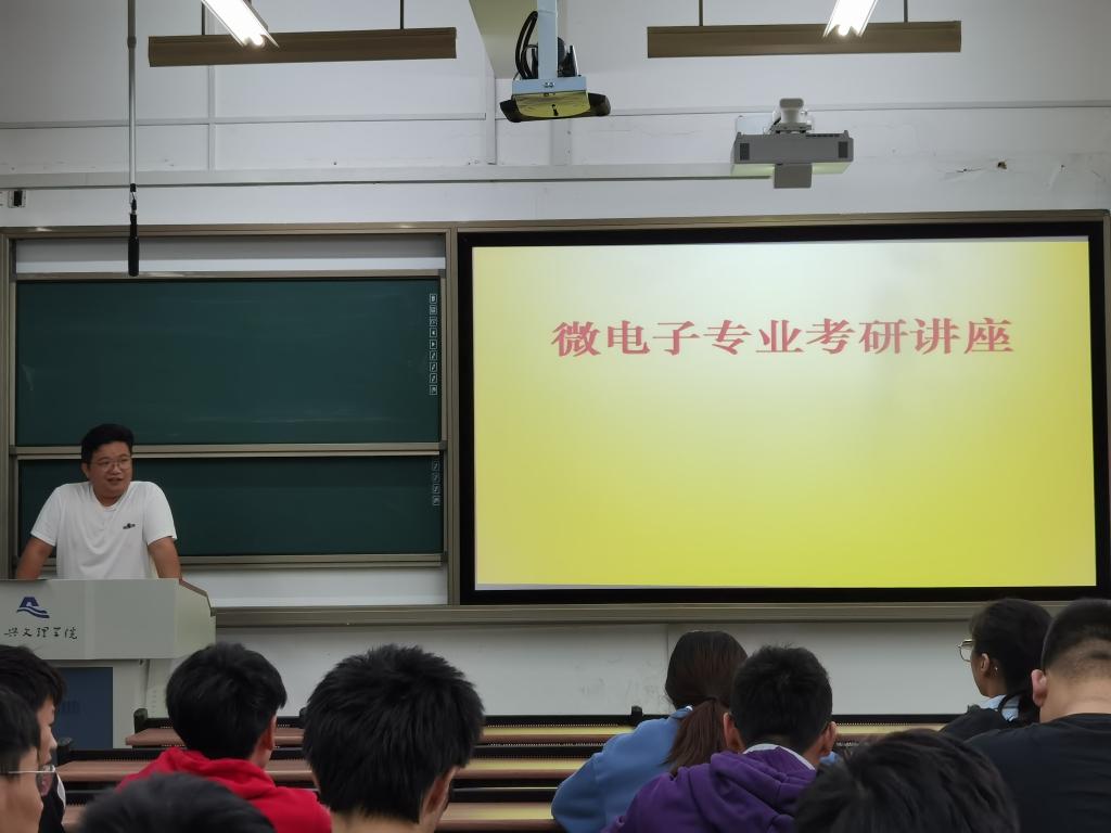 首先,各专业在分会场进行了考研动员会议。微电子科学与工程专业在综合楼C206召开动员会议。专业考研导师组组长徐海涛老师从专业简介、生活中的微电子、绍兴市在微电子方面发展战略、微电子平台支撑以及毕业生发展等方面展开介绍,着重强调了微电子专业考研的优势。他指出,微电子在生活中也占据了越来越重要的地位,绍兴文理银河国际