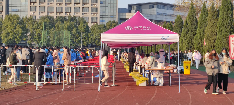 工作部署,由学生科牵头,辅导员、班主任、师生党员等组成志愿者队伍,从检测场地设置、物资准备、检测流程、路线规划、班级调度等方方面面都进行了讨论和部署。各班班长负责全班同学的检测登记,提前让同学填好个人信息,提高检测效率。现场银河国际