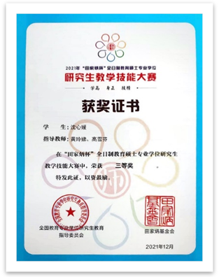 学科教学(数学)专业20级硕士生沈心媛以优异的表现获得了三等奖。据悉,本次大赛共计138所银河国际