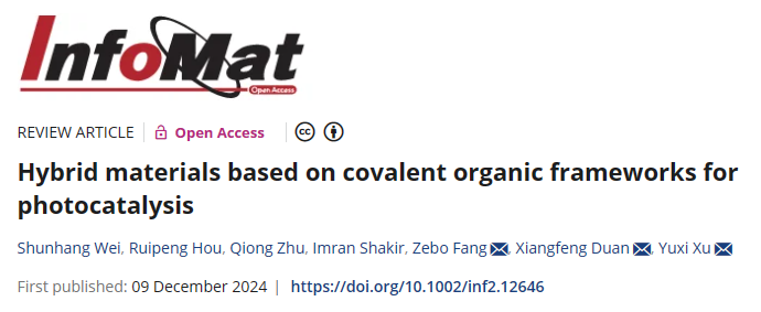 位顺航博士、方泽波教授在中科院一区期刊《InfoMat》发表题为“Hybrid materials based on covalent organic frameworks for photocatalysis”的综述论文。