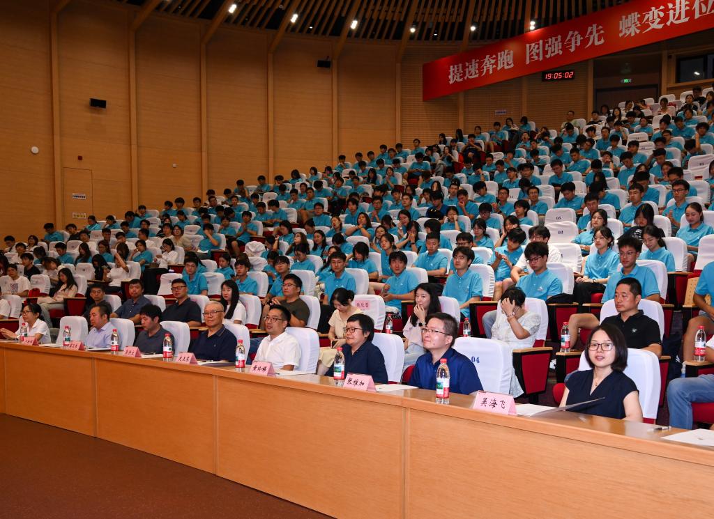 的学科专业设置、师资力量建设和师生在科研、竞赛等方面取得的成绩,并送给新生三句“成长箴言”:一要夯实基础,具备“长线开挂”的底气;二要跨界融合,解锁“创新盲盒”;三要知行合一,既能“仰望星空”追真理,也能“脚踏实地”解难题。