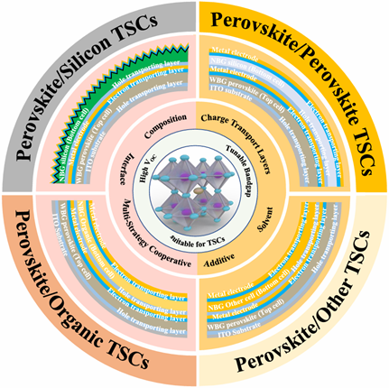 宽带隙钙钛矿太阳能电池及其叠层器件性能提升策略概述图