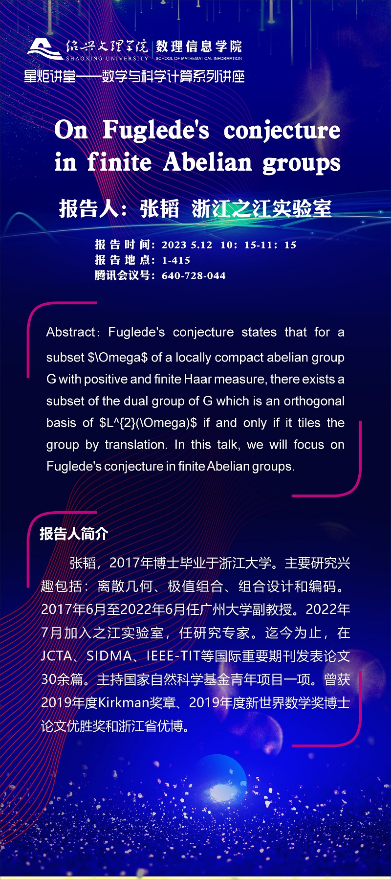 浙江之江实验室 张韬:On Fuglede's conjecture in finite Abelian groups