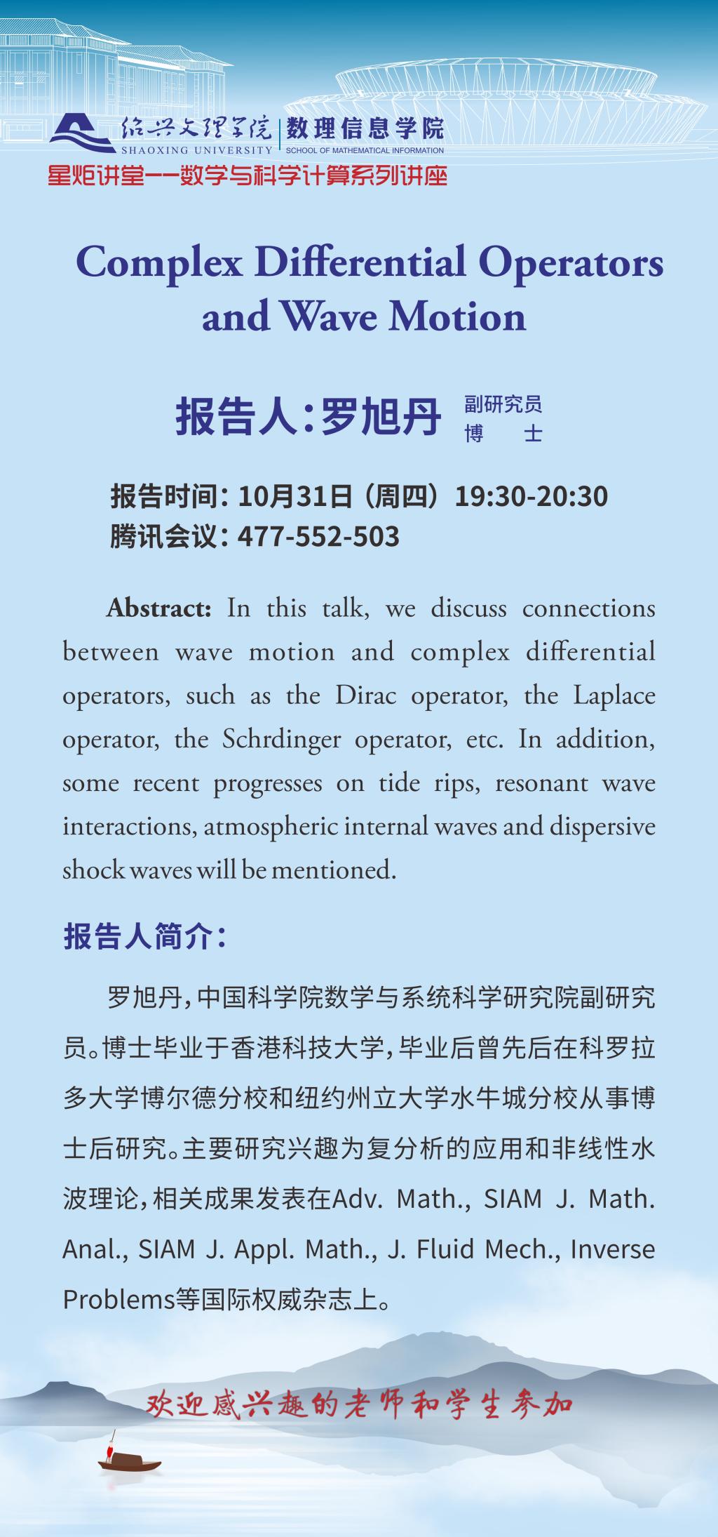 中国科银河国际 数学与系统科学研究院 罗旭丹:Complex Differential Operators and Wave Motion