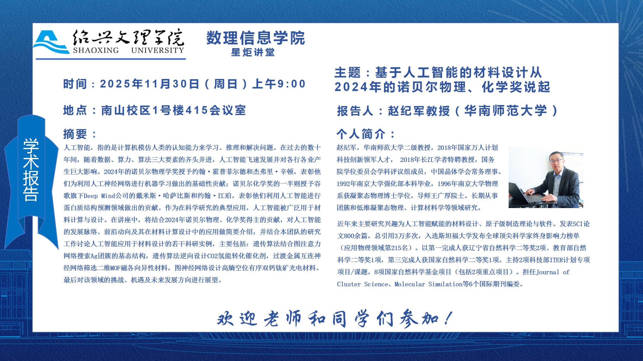 华南师范大学 赵纪军教授:基于人工智能的材料设计从2024年的诺贝尔物理、化学奖说起