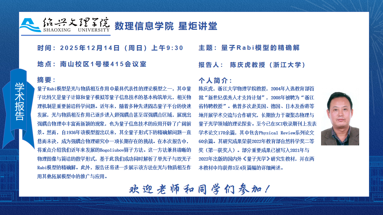 浙江大学 陈庆虎教授:量子Rabi模型的精确解
