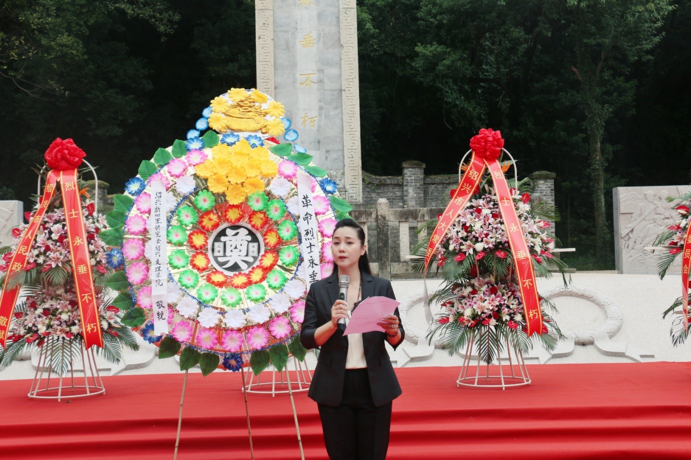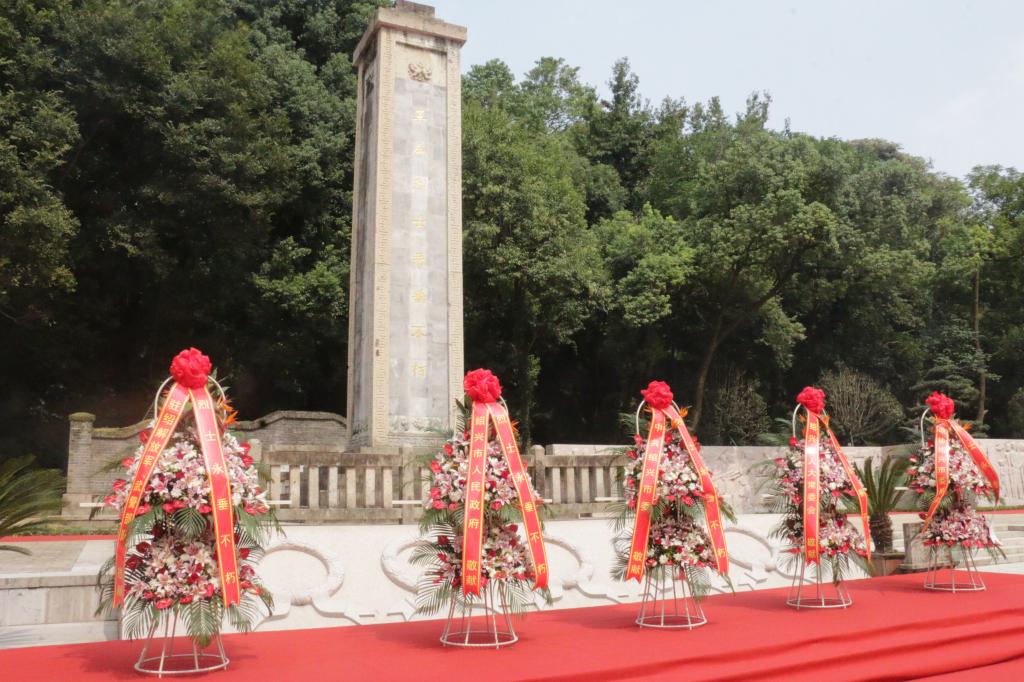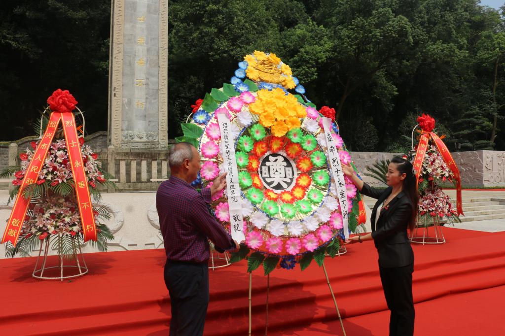 党委书记周柳萍向纪念碑献花圈。
