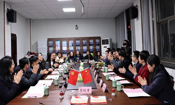 党委委员、党支部书记、系主任、专业主任以及稽山中学党务干部、党支部书记、党员教师代表参加大会。签约仪式由庞飞主持。