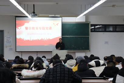 党委副书记、纪委书记庞飞在南山六号楼A106教室为全体师生党员主讲了“警示教育”专题党课。