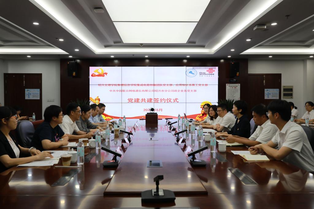 集成电路创新团队党支部书记张维加、应用统计系教工党支部书记蒋红云分别与绍兴联通政企业务党支部书记高深签订党建共建协议。