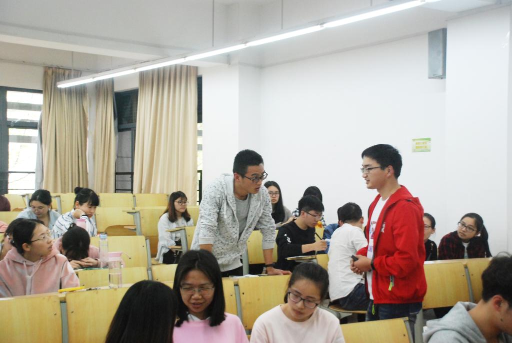 然后,学长讲述了考研会遇到的诸多问题,家庭原因、担心工作、自身意志不坚定、患得患失等,学长通过过来人的经验告诉在座的同学,一定要摆平考研的心态。最后,学长向大家介绍了自己的考上研究生以后的生活,看到学长丰富的研究生活,在坐的同学都表示出好奇和羡慕,对考研的决心也更加坚定了。