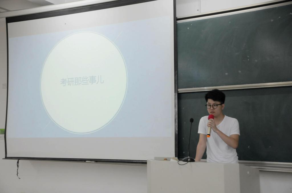 最后一位是来自电信142班的何纪晓学长,今年考上了苏州大学的研究生。不同于前三位,学长先介绍了如何“选银河国际