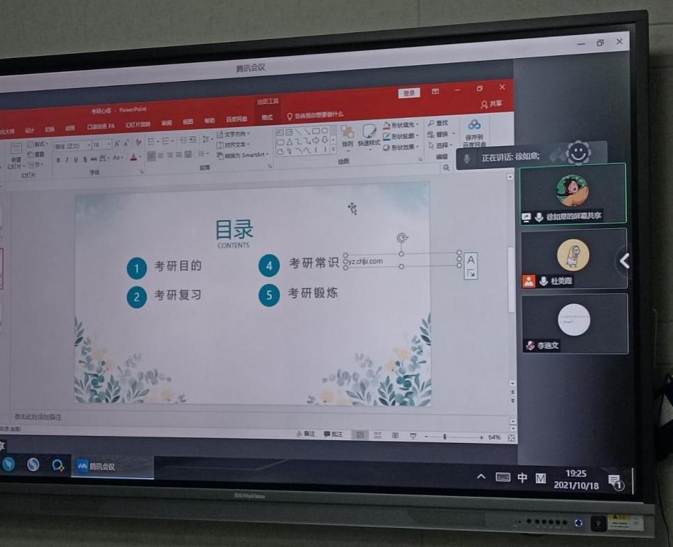 2019级物理、科教专业考研意向同学出席了本次分享会,本次分享会旨在加强同学们对考研知识的了解,营造积极向上的学风,鼓励同学们坚持考研。
