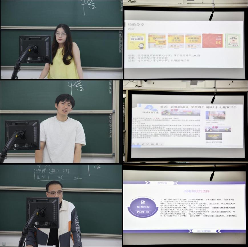 在6号楼C306召开物理专业考研经验分享会。本次分享会邀请到2020级物理学、科学教育(师范)专业上岸的同学分享他们的考研经验,物理专业考研导师组长董一鸣老师、班主任施碧云老师、杜美霞老师,物理学、科学教育(师范)专业意向考研学生参加了本次分享会。