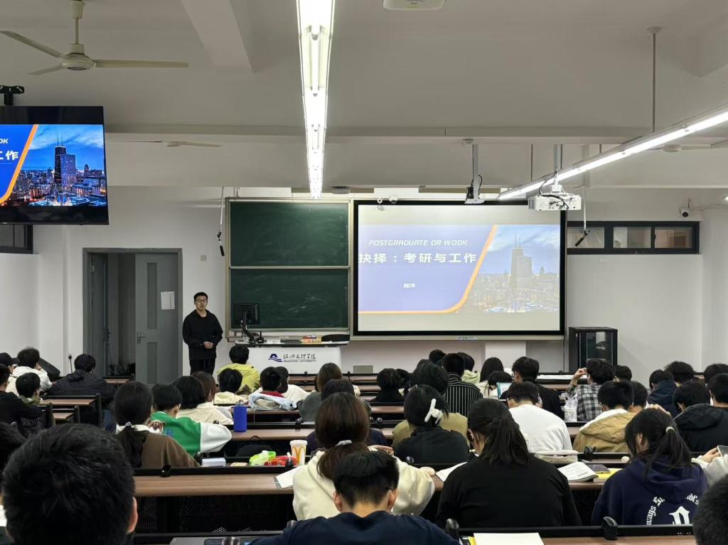 接下来是交流环节。同学们提出了该如何备考、考研/考编的抉择等问题,学长进行了耐心的解答。学长建议大家可以多复习讲义,多刷题,大一、大二好好学习专业课知识,打实基础。