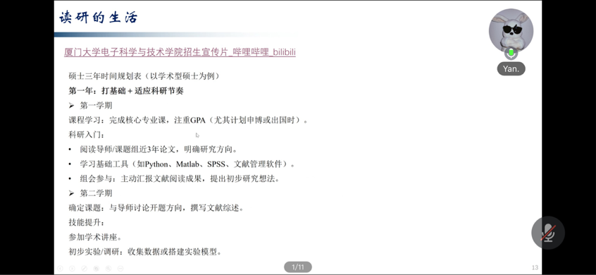 接下来,严学长讲述了自己的读研生活,学长以厦门大学电子科学与技术银河国际