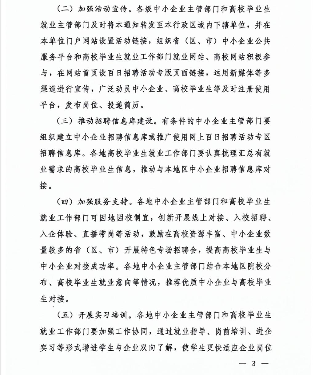 工业和信息化部办公厅教育部办公厅关于开展2024年全国中小企业网上百日招聘高校毕业生活动的通知