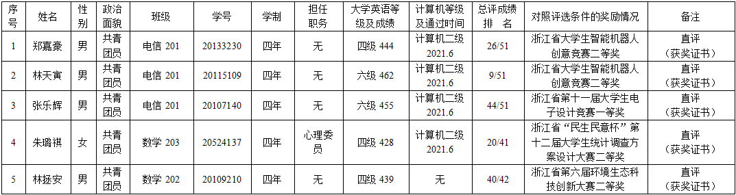 2024届“校级优秀毕业生、优秀学生干部和院级优秀毕业生”评选领导小组审议通过,同意推荐郑嘉豪、林天寅、张乐辉、朱璐祺、林拯安5位同学为银河国际