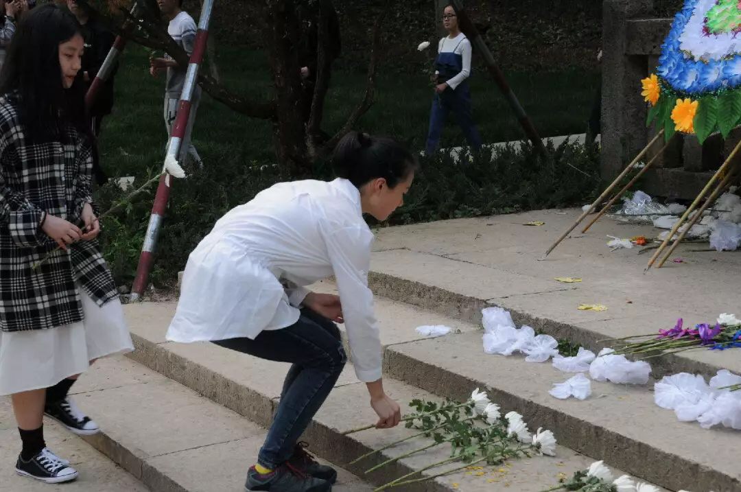 | “青山绿水长留生前浩气,苍松翠柏堪慰逝后英灵。”学生会成员向烈士纪念碑庄重献上了花圈,绕纪念碑走一圈并献上洁白的菊花,然后伴随沉重的哀乐向烈士默哀三分钟,以此表达我们对烈士的崇敬怀念之情。 |
