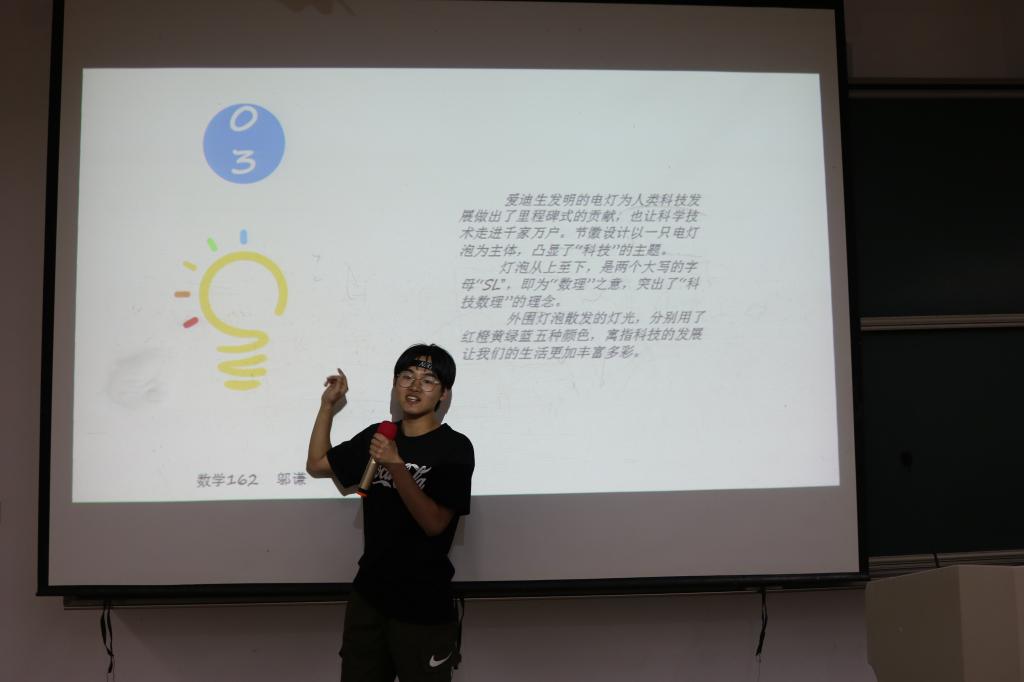 开幕式最重要的一项内容就是“科技文化节logo设计”大赛的优秀作品设计理念介绍,以及作品的获奖评选。六位来自不同年级的优秀作品设计者分别上台展示了自己的设计作品,并对自己的设计进行讲解,诠释作品所涵盖的理念。在观众进行投票以及工作人员统计票数的同时,科技部为同学们准备了一个观众摇号提问的环节,抽中号码的同学只要答对所给出的有关科学的小问题,就能领取一份精美的小礼品。在简短的互动之后,投票结果统计结束,最后荣获一等奖的是数学162班的邬谦同学。他的设计作品将会录用为本次科技文化节的节徽,展示科技文化节的精神,传达科技文化节的理念。