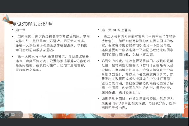 此次交流会,给即将复试的同学对复试更加有信心和准备,最后祝愿各位同学能够在考研道路上披荆斩棘,去到自己想去的大学继续深造!