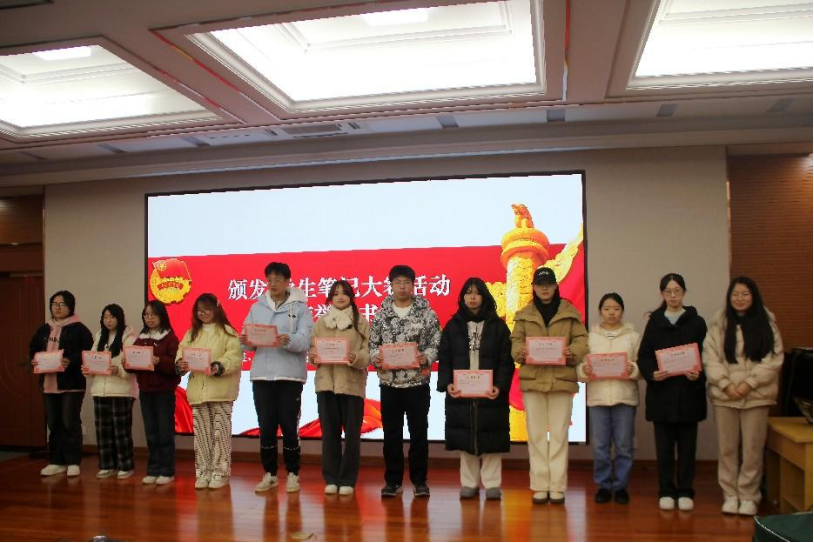 大会第二项议程:宣读“笔墨生香,厚积薄发”学生笔记大赛表彰文件。同学们的笔记犹如一面镜子,清晰映照出数理学子们在求知之路上的勤奋与专注,那一笔笔详实的记录、一处处精心的标注,无不彰显着他们认真严谨的学习姿态。而那字里行间所洋溢出的昂扬向上的精气神,更是具有强大的感染力与号召力,为全体同学树立起了优秀的标杆,发挥了极为卓越的示范引领效能。宣读完毕,由周依老师为获奖同学颁奖。