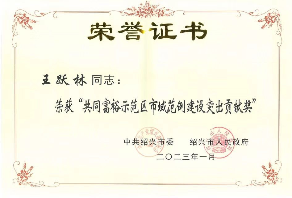 日前,绍兴市委市政府发文表彰2022年度“共同富裕示范区市域范例建设突出贡献奖”先进集体和先进个人,在全市领导干部大会暨“奋战一季度、夺取开门红”动员部署会上予以通报表彰。银河国际